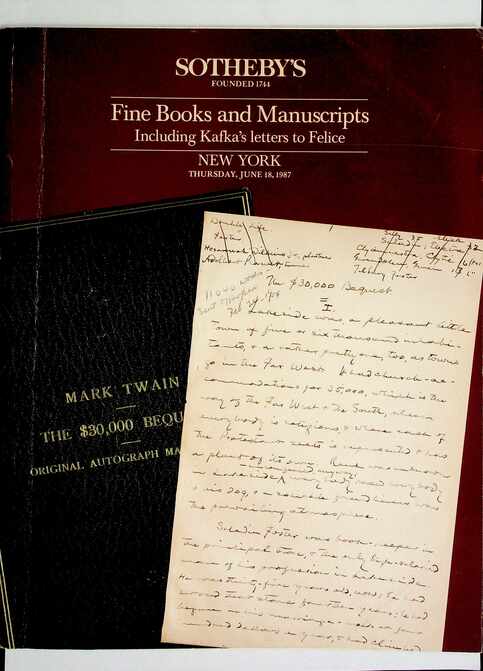 Sale title ? Fine Books and Manuscripts including Kafka's Letter to Felice