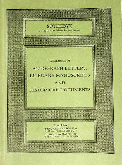 Sothebys March 1980 Autograph Letters, Literary Manuscripts & Historical