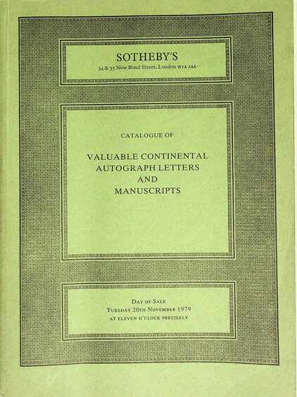 Sothebys November 1979 Valuable Continental Autograph Letters & Manuscripts