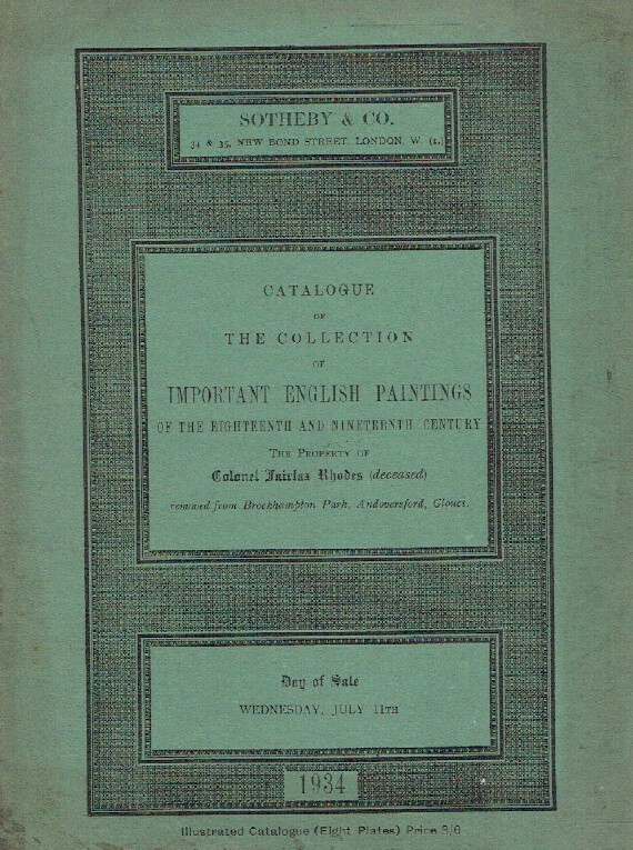 Sothebys July 1934 Important English Paintings of The 18th and 19th Century