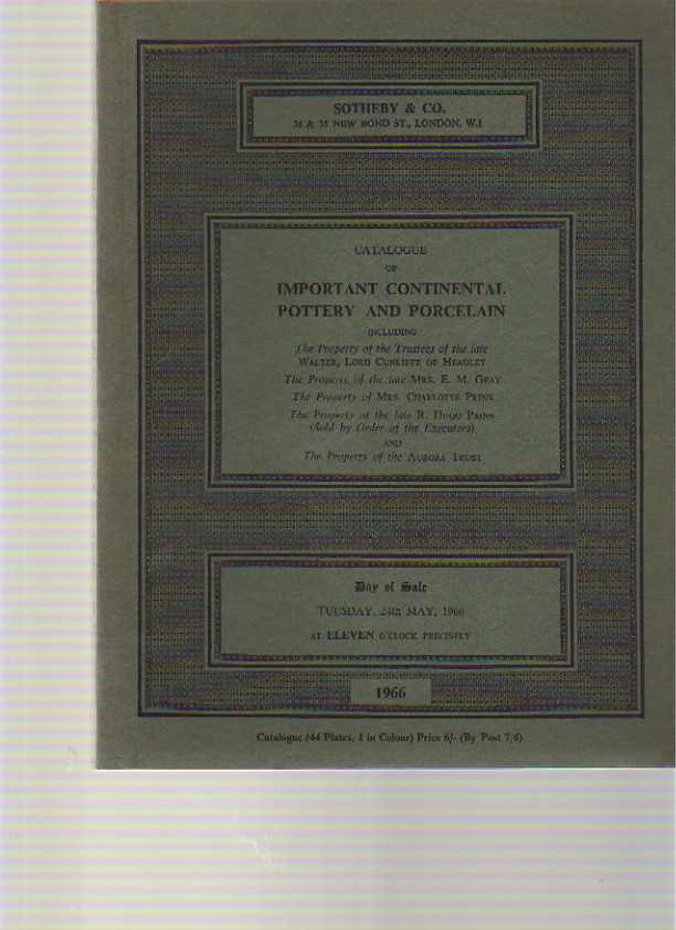 Sothebys 1966 Important Continental Pottery & Porcelain